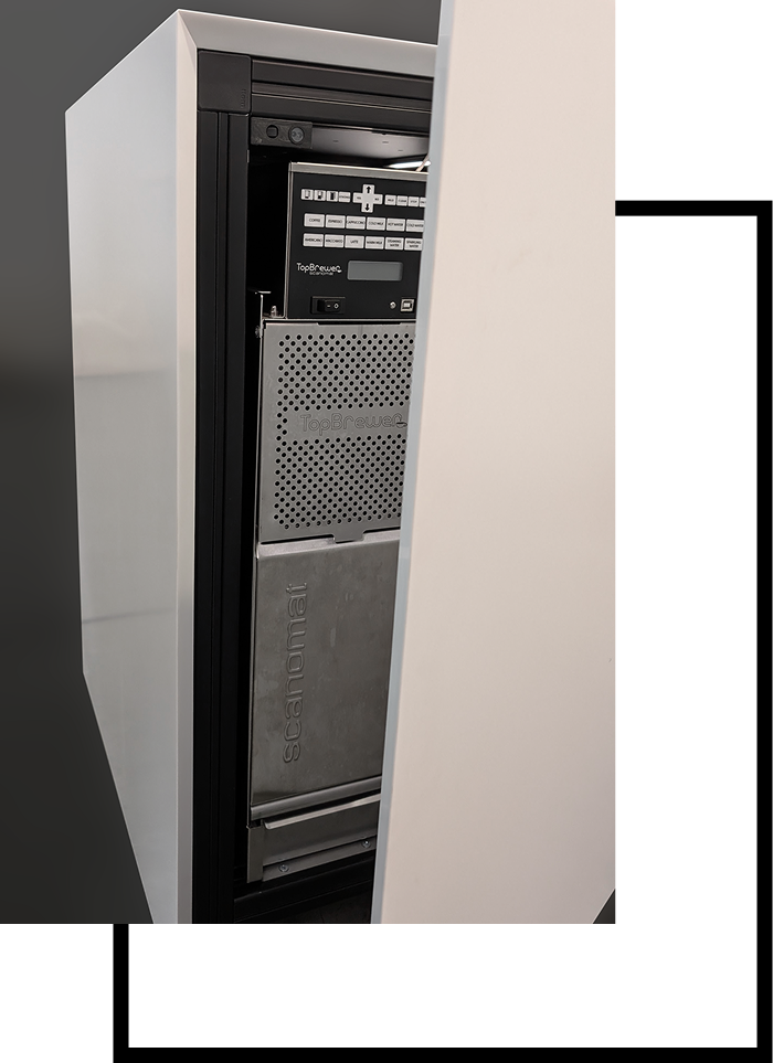 cremadonna comes with the TopBrewer Compact by Scanomat which is one of the best-in-class professional coffee machines with an advanced precious stainless steel grinder and brewing mechanism. All components used in a cremadonna are tested and certified (e.g. for food safety) and designed to last for many years.