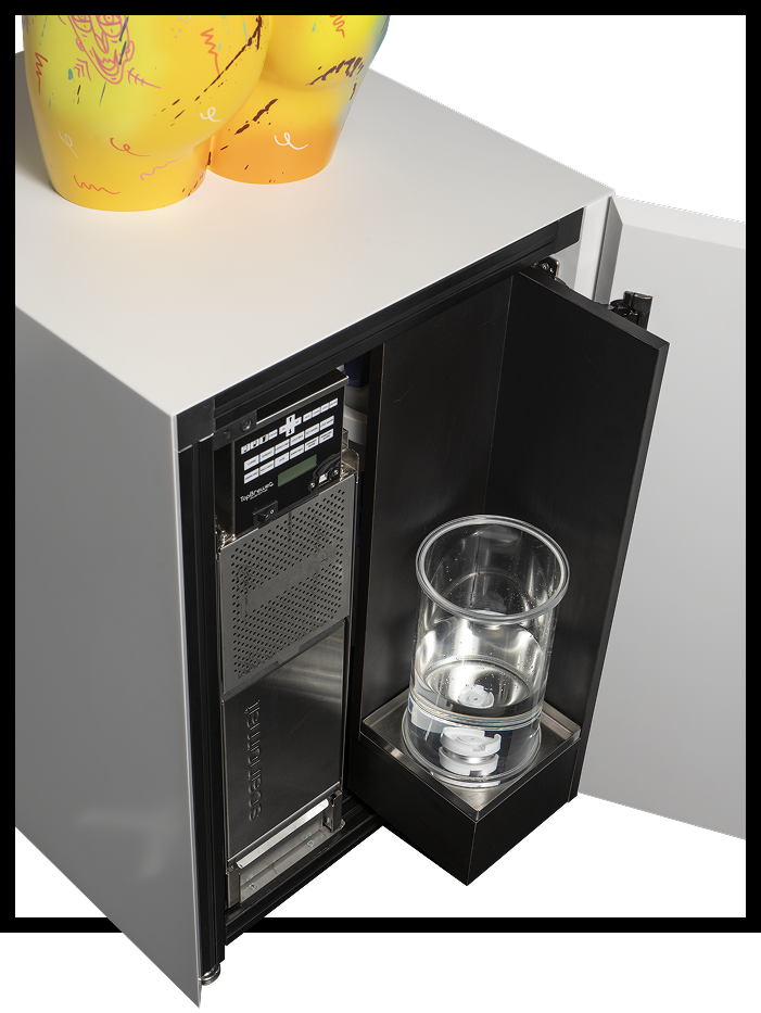 Charge your smartphone while enjoying a wonderful espresso with a wonderfully fragrant crema. The pedestal comes with a wireless QI charging function up to 10 W invisibly integrated into the surface.